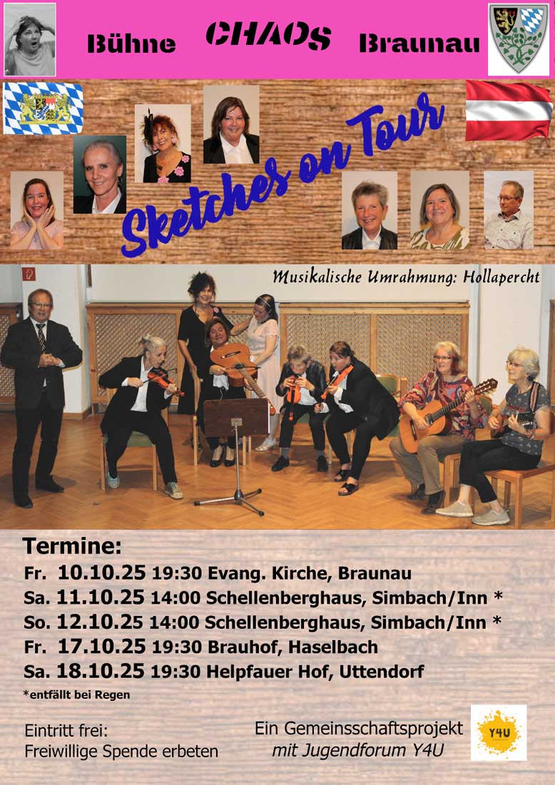 Die „Bühne Chaos“ zeigt wieder humorvolle Sketche, untermalt von Musikeinlagen des Duos „Hollapercht“. Seit Juli 2023 gibt es die bunt zusammengewürfelte Gruppe aus privaten Schauspielern und Musikern aus Braunau und Umgebung. Zudem besteht eine enge Zusammenarbeit mit dem Jugendforum Y4U. Gemeinsam erarbeiten sie Sketche und stellen diese dar. Der Spaß und die Freude stehen dabei im Vordergrund.