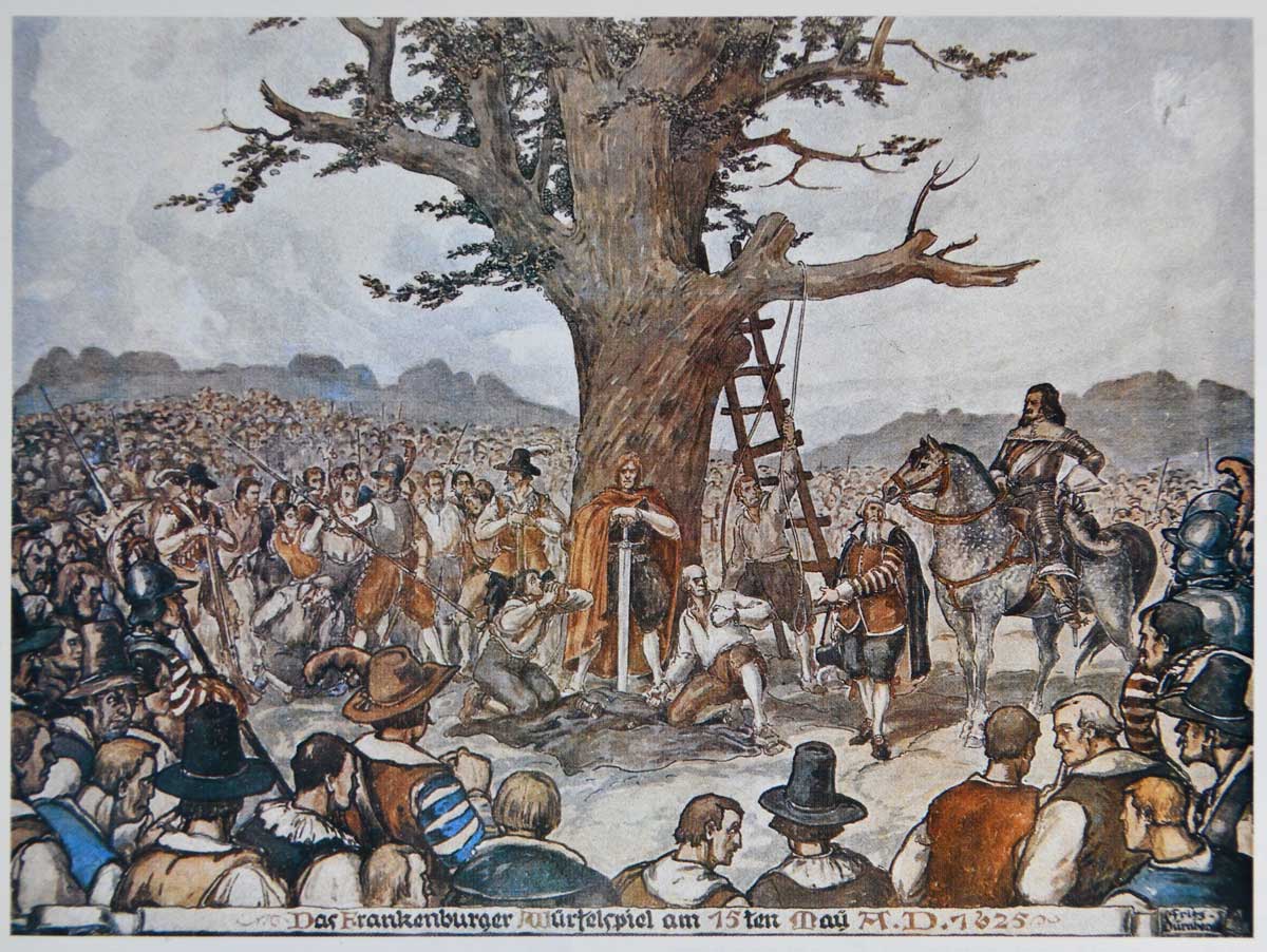 Besondere symbolische Bedeutung gewann dabei das später als ‚Würfelspiel‘ bekannt gewordene Frankenburger Strafgericht von 1625. Die öffentliche Hinrichtung örtlicher Obrigkeiten auf Grundlage eines Losverfahrens, nachdem es um und in Frankenburg aufgrund der Einsetzung eines römisch-katholischen Pfarrers zu einer spontanen Erhebung gekommen war, wurde rasch zu einem Verdichtungspunkt kollektiver Erinnerung. Schon zeitgenössisch wirkte das Ereignis als Menetekel – als warnendes Beispiel herrschaftlicher Gewalt wie auch als Märtyrererzählung bäuerlichen Widerstands. Das Strafgericht diente den Aufständischen als Legitimation ihres gewaltsamen Widerstands.