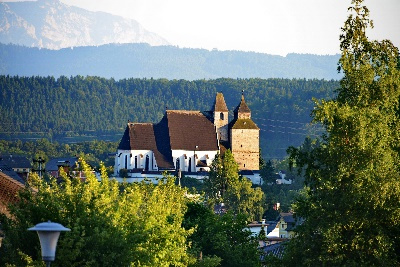 Station 2: Marienkirche in Schöndorf - Spätgotische Hallenkirche Das Geheimnis der Doppelturmanlage – evang. Epitaph des Leopold Praun. St. Ulrich und Heimathaus – spätgotische Hallenkirche, Kirche der Bürger, Benifiziatenhaus evang. Schule Stadtmuseum/ Heimathaus. Schloss Wagrain und die Engl - Aufschwung unter David Engl aus Steyr, Renaissancebau mit Renaissancegarten, Gebietserwerbungen