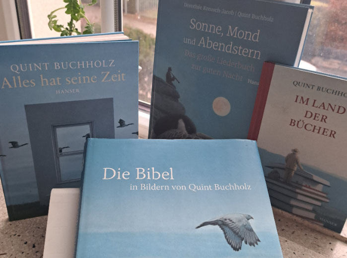 "Die wahren Entdeckungsreisen bestehen nicht im Kennenlernen neuer Landstriche, sondern darin, Dinge mit anderen Augen zu sehen." (Proust zitiert auf dem Klappentext zur Bibel mit den Illustrationen von Quint Buchholz)