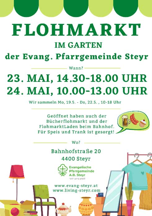 Unseren „Jahres“-Flohmarkt veranstalten wir auch heuer wieder in unserem Garten und das auch bei Schlechtwetter, denn für „Überdachung“ ist gesorgt. Der kleine oder große Hunger und Durst können im Gastrozelt und in unserem Café gestillt werden.